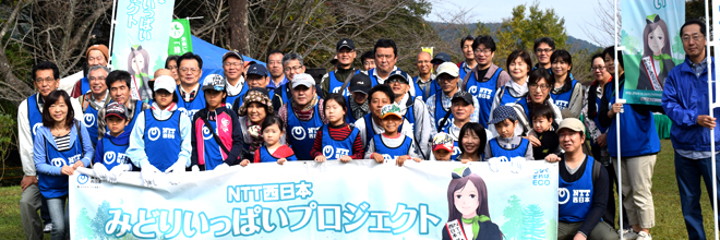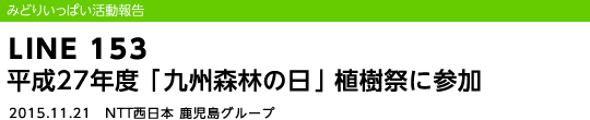 NTT西日本鹿児島グループは、11月21日(土)、鹿児島県、鹿児島森林管理署、(公財)かごしまみどりの基金が主催する平成27年度「九州森林の日」植樹祭に参加しました。