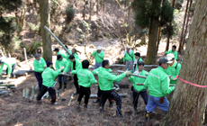 3月5日(土)熊本グループでは、山都町の吉無田高原にある「地球緑化の森」において、植樹や下草刈りなどの作業を行いました。