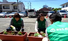 当日は夏を感じさせる暑さとなり、新しい土作りから始め、古い土との入れ替え、植え付けまで社員は時折、汗をぬぐいながらの作業となりました。