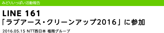 5月15日(日)、NTT西日本福岡グループは環境クリーン作戦として、今年で28回目となる市民・企業・行政による地域環境美化活動「ラブアース・クリーンアップ2016」に参加しました。