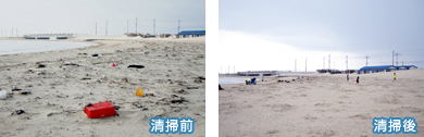 この活動は、地域の環境美化や自然環境保護および地域貢献活動の一環として、平成元年から志賀島海水浴場にて実施している清掃活動です。