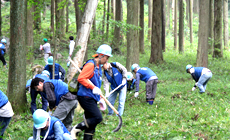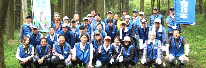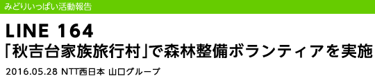 平成28年5月28日(土)、秋吉台家族旅行村においてNTT西日本 山口グループ社員とその家族、OBの33名が参加し、森林整備のボランティア活動を行いました。