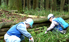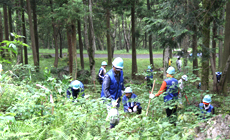 あいにくの小雨模様でしたが、造林や成長過程で過密になった木を抜き伐りする「間伐」や、森林の管理を効率良く進めるための必要な作業に、参加者全員が力を合わせて取り組みました。