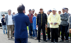 最後に事務局を代表して、NTT西日本徳島支店・藤見企画総務部長より、今回のアドプト吉野川の清掃活動で、4月の第1回目の実施で初めて100人を上回るボランティアの方々に参加いただけたことに対する感謝の言葉が述べられました。次いで、5月15日(日)には徳島の中心地で行われる「とくしま・まちかど花ロード(花の植樹活動)」にも多数の方にご参加をいただきたいと、挨拶されました。