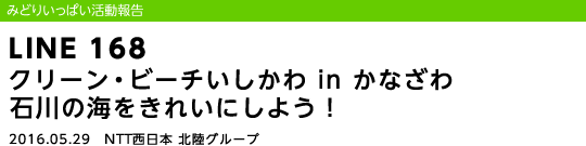 平成28年5月29日(日)、石川の海岸線をきれいにする海岸愛護運動「クリーン・ビーチいしかわinかなざわ」にNTT西日本北陸カンパニー及びグループ企業の社員およびその家族230人が参加しました。
