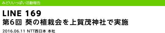 約1,500年前に起源がある葵祭りを飾る葵は、昔は境内をはじめ、あたりまえに自生していましたが、自然環境の変化、特に最近では鹿の食害により、上賀茂神社(正式名称:賀茂別雷神社)境内だけではなく、近隣の山林や周辺でも見られなくなってきています。そこで、NTT西日本グループ社員・ご家族等が葵の里親となり、オフィスや社員の自宅などにおいて葵の苗を生育し、年に一度里親から株分けされた苗を集め、上賀茂神社に植栽をしていく取り組みを平成23年から行っていて、今回で6回目の開催になります。