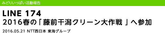ホーム の中の 企業情報 の中の NTT西日本グループのサステナビリティ の中の みどりいっぱい活動報告 の中の LINE 174 2016春の「藤前干潟クリーン大作戦」へ参加