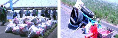 それらを一つひとつ回収していくうちに、堤防上はみるみるうちにごみの山が出来、予定されていた90分間で回収したごみは、45リットルサイズのごみ袋で959個分にもなりましたが、その甲斐も有り、作業後には、見違えるほど美しい風景が広がっていました。