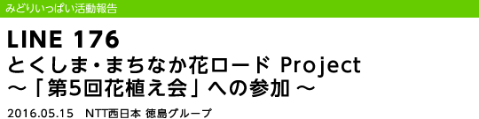 NTT西日本徳島グループでは、5月15日(日)に「みどりいっぱいプロジェクト」として、NPO法人「新町川を守る会」が実施している「とくしままちなか花ロードProject」の「第5回 花植え会」に参加しました。
