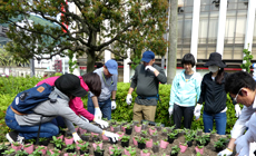 指定場所の作業を終え、後片付けをしていたところ事務局より「徳島グループには花植え会に何度も参加されているベテランの方が多くおられますので、まだ作業が終わっていない場所の応援をお願いします」との依頼があり、全員でお手伝いをさせていただきました。