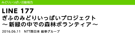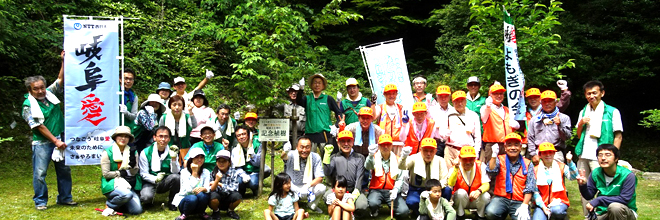 NTT西日本岐阜グループは、平成28年6月11日(土)、岐阜市三田洞にある「ながら川ふれあいの森」で、社員とその家族・OBなど47名の参加による、下草刈りなどを行う森林ボランティア活動を実施しました。