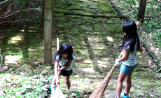 当日は、梅雨の合間をぬった晴天に恵まれ、暑い日差しが降り注ぐ中、汗だくで本格的な草刈り機で作業する大人に交じって、参加した子どもたちも慣れない竹ぼうきに奮闘しながら手伝ってくれました。