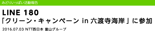 平成28年7月3日(日)、NTT西日本 富山グループは、富山県射水市で行われました「クリーン・キャンペーン in 六渡寺(ろくどうじ)海岸」(主催:FMとやま)の清掃活動に参加しました。