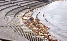 六渡寺海岸は、庄川と小矢部川の河口の間にあるため、2つの川からゴミが流れ着く場所です。とくに小矢部川から流れてくる水草や苗入れ用の黒ポット、ペットボトル、空き缶、プラスチック容器などのゴミが常に海岸へ漂着し、問題となっており、そのため海岸にはごみが散乱し、悲しい光景が広がっています。