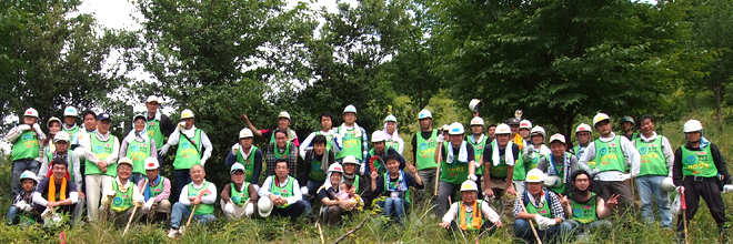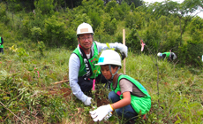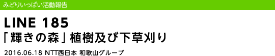平成28年6月18日(土)、NTT西日本和歌山グループは、和歌山県が推進する「企業の森」事業の森林環境保全活動の一環として、田辺市龍神村にある「輝きの森」で植樹及び下草刈りを実施しました。