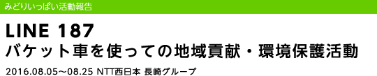 NTT西日本長崎グループは2007年(平成19年)より継続して行っている「バケット車を使っての地域貢献・環境保護活動」の取り組みについて、今年度は、8月5日(金)の佐世保エリアを皮切りに県内の3ヶ所で実施しました。