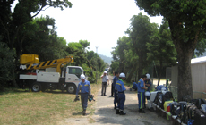 児童や生徒達の安全と安心を確保するために不要な樹木を伐採・剪定することも環境保護の一環であるとの想いから、NTT西日本長崎グループではこの活動に引き続き取り組んでまいります。