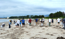 天気予報は「曇り」で降水の恐れもありましたが、雨や激しい気温の上昇に見舞われることもなく恰好の清掃日和となりました。参加者は午前7時から精力的に清掃活動に取り組み、海岸に投棄されたペットボトルや漂着した流木などのゴミを次々に拾い集めて袋に入れ、積み上げました。
