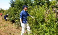 前回の下草刈りから9ヶ月が経過していたこともあり、草木が生い茂り、伸びすぎた枝の剪定や木々の間の草取りを行い、また植樹地の外は萱が人の背の高さほどに伸びており、草刈り機を使用して綺麗にすることができました。
