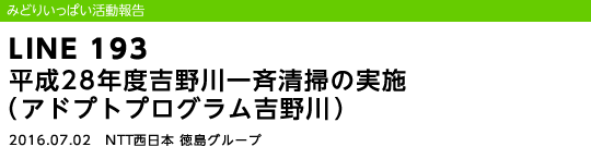 - 「徳島県庁:吉野川交流推進会議」と「NTT西日本徳島支店」が、アドプト(養子縁組)した区間