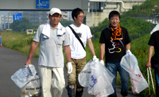 また、「アドプト・プログラム」とは、吉野川の河川敷を一定区間ごとに分け、各区間で参加者(団体企業等)を募り、河川敷と参加者が「養子縁組(Adopt)」するもので、参加者は担当地区の「里親」として、親になった気持ちで「養子」である河川敷の担当地区の清掃美化活動を定期的に年3回以上実施します。徳島グループの活動場所は、吉野川左岸河口から上流1,400m〜2,000m間の堤防及び河川敷600m区間です。