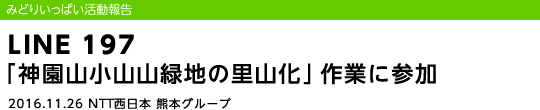 平成28年11月26日(土)、NTT西日本熊本グループは熊本市東区の神園山小山山緑地(こうぞのやまおやまやまりょくち)で、里山化作業を実施しました。