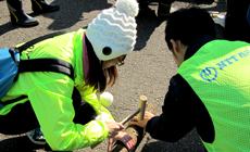 原木は活動地のサクラ林等の除間伐材を有効活用し、木槌を使ってナメコの種駒を打ち込み、2年後の秋には、たくさんのナメコの発生が期待されます。