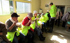 そして、3年前に植菌した原木にびっしり生えたナメコを参加者で収穫し、とれたてのナメコを使ったメッタ汁を、作業終了後おいしくいただきました。