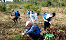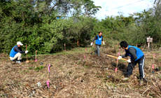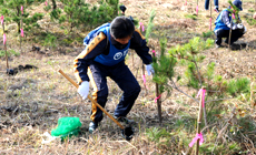 宮崎県では「松くい虫」による大きな被害が出ており、宮崎グループは今回松の苗木の植栽を行う班を担当し、風に負けない大きな松の木に育つようにと願いを込めて、鍬(くわ)で穴を掘り、一本一本丁寧に、1,000本の松の植栽作業を行いました。