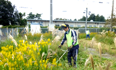 除草の目的として、工事用車両の駐車スペースを確保するということもありますが、外来種植物の駆除による環境保護活動と、隣接地が田畑や一般住宅など草が伸びたままだと目立つ場所も多くあるため、景観を整備する地域貢献も兼ねて実施しています。