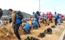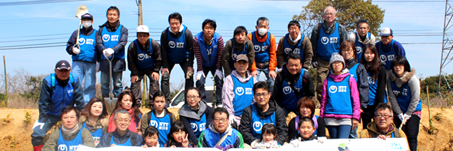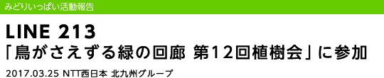 平成29年3月25日(土)、NTT西日本北九州グループは「鳥がさえずる緑の回廊 第12回植樹会」(主催:鳥がさえずる緑の回廊植樹会実行委員会 共催:北九州市)に社員とその家族の37名で参加しました。