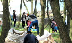 平成29年4月22日、NTT西日本福岡グループは、福井海岸(福岡県糸島市二丈福井)にて、社員とその家族87名が参加し、今回で6回目となる松林保全活動を実施しました。