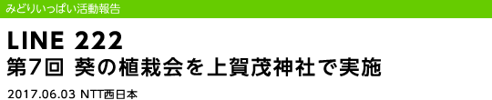 平成29年6月3日に、里親となっていただいたNTT西日本グループ社員が育てた葵の苗を株分けし上賀茂神社へ植えなおす、葵の植栽会を上賀茂神社で行いました。