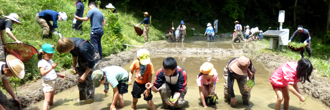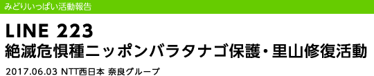 ホーム の中の 企業情報 の中の NTT西日本グループのサステナビリティ の中の みどりいっぱい活動報告 の中の LINE 223 絶滅危惧種ニッポンバラタナゴ保護・里山修復活動