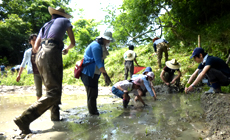 その後は、田植えグループと草木の伐採グループに分かれて作業を行いました。
