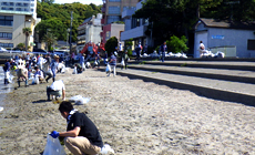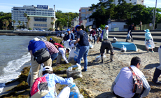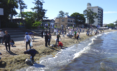 清掃場所に散乱している可燃ごみ、不燃ごみ、そして打ち上げられている藻を、分別回収していきます。藻は水分を多く含んでいるため、集めるとかなりの重量となりました。回収された藻は、乾燥させて肥料にするそうです。