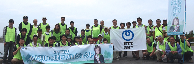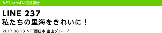 平成29年6月18日(日)、富山県射水市(いみずし)で行われた「クリーン・キャンペーン in 六渡寺(ろくどうじ)海岸」(主催:FMとやま)の清掃活動にNTT西日本富山グループの社員とその家族など51名が参加しました。