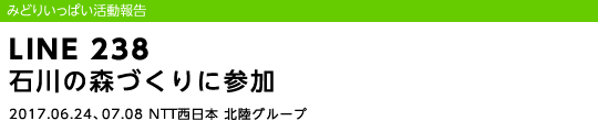 NTT西日本北陸グループは、平成29年6月24日と7月8日の各土曜日に、公益社団法人石川の森づくり推進協会主催の「石川の森づくり」に参加しました。