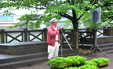 参加者が朝8時に藍場浜公園に集合した後、オープニング・セレモニーが開催されました。初めに徳島県副知事の挨拶では都市環境の向上と都市緑化の推進の普及啓蒙活動についてお話がありました。次に「新町川を守る会」の中村理事長からは、「ボランティアを募り、参加いただいたみなさんの花植えにより、徳島市を花いっぱいの街にするのが目標。できるだけ多くの市民に参加して頂きたい。」とご挨拶されました。