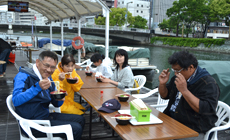 また、「新町川を守る会」が両国橋で運営している「ひょうたん島クルーズ」の船着き場では、朝早くから植栽作業を実施している人達のために、温かいうどんがふるまわれました。