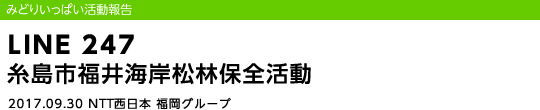 平成29年9月30日、NTT西日本福岡グループは、福岡県糸島市二丈福井の福井海岸にて、今回で7回目となる松林保全活動を実施しました。