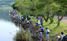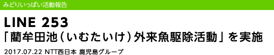 平成29年7月22日(土)、NTT西日本鹿児島グループは薩摩川内市(さつませんだいし)の藺牟田池自然公園で、「平成29年度外来魚駆除活動」を実施しました。