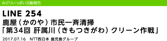 平成29年7月16日(日)、 肝属川クリーン作戦実行委員会主催の「第34回肝属川クリーン作戦 」が開催され、NTT西日本鹿児島グループの社員で、NTT鹿屋ビル勤務、鹿屋市在住の15名が参加しました。