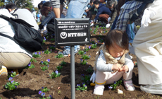 このプロジェクトは、東山動植物園が企業や団体と協働のもと、「植物園を色とりどりの季節の花々でいっぱいにしていこう」という趣旨で、年3回春・夏・秋の花壇づくりに取り組んでいます。NTT西日本東海グループは平成25年から、社員や退職者及びその家族が毎回多数参加しており、今回の参加人数は227名でした。