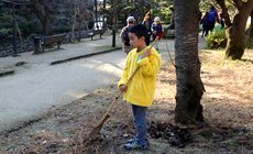 その後、公園内の各施設の美化を目的としてゴミ拾いを行いました。公園管理事務局とNTTグループ会社が清掃道具を貸し出し、松山市からはゴミ袋の提供とゴミの収集にご協力をいただき、地域ぐるみの清掃活動となりました。