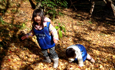 まず公園中央部の森で、腐葉土(肥料)を作るための落ち葉を集めて、木々の根元に散布しました。散布した落ち葉はミミズや微生物などによって分解され腐葉土となり、木々の成長を助けてくれることでしょう。また、通気性や保水性に優れた土壌に改善される効果も期待できます。