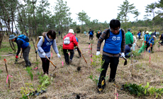 活動場所である阿波岐原(あわきがはら)森林公園では、松くい虫の被害が進んでおり、県内から集まったボランティア参加者など約500人が森林の枝打ちや下草刈り、植栽活動に取り組みました。