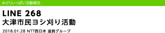 平成30年1月28日(日)、大津市が主催する「大津市民琵琶湖ヨシ刈り」が大津市雄琴(おごと)で開催され、NTT西日本滋賀グループからは社員やその家族など22名が参加しました