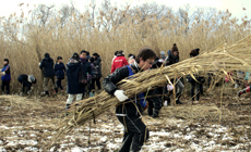 ヨシの群生は、野鳥や魚のすみかとして産卵・生育に欠かせない場所であり、また、水中の窒素やリンを吸収して成長したヨシを刈り取ることは水質浄化に繋がります。