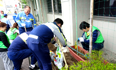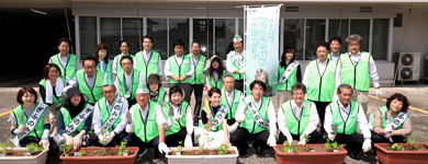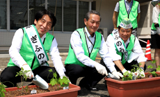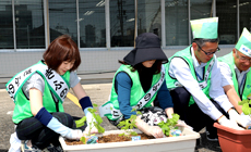 当日は連休明けの暑い中、多くの社員が汗だくになりながらも、花壇の草引きからプランターの土の入れ替えや苗の植え付けを行い、これまでの活動で作業に手慣れた社員による声かけもあって、とても手際よく進みました。